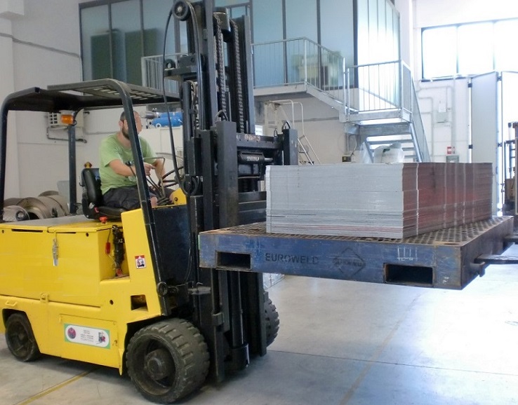 • Altezza max pacco pallet + lamiere + pallet: 900 mm.